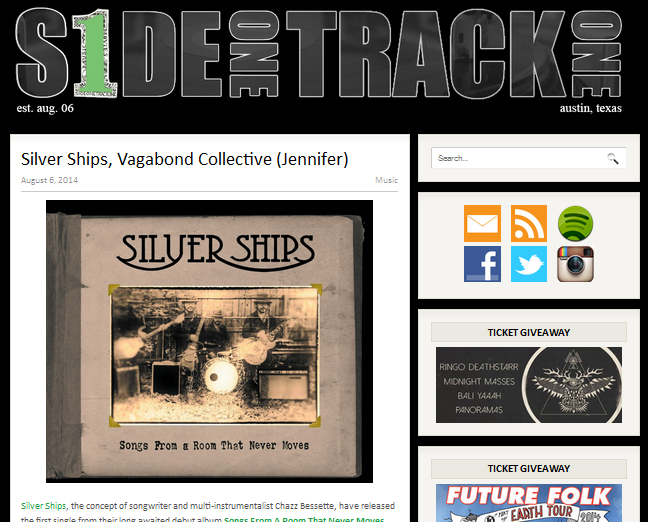 Side One Track One features Silver Ships’ song “Summer’s Gone” Posted on August 6, 2014August 6, 2014 by Rebekah Tweed Side One Track One features Silver Ships’ lead single “Summer’s Gone”! // Silver Ships media page // Share this: Click to share on X (Opens in new window) X Click to share on Facebook (Opens in new window) Facebook Like Loading... Related