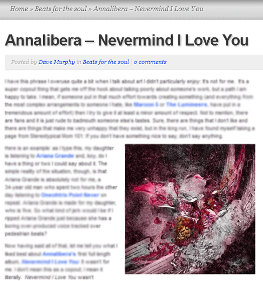 DSMNIB‘s Dave Murphy pens a beautiful review of Annalibera‘s debut full-length Nevermind I Love You, out on vinyl and digital formats from Sump Pump Records on March 24th.