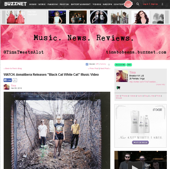 Tina Bobeena shares Annalibera’s video on Buzznet Posted on March 9, 2015March 17, 2015 by Rebekah Tweed Tina Bobeena shares Annalibera‘s video for “Black Cat White Cat.” Share this: Click to share on X (Opens in new window) X Click to share on Facebook (Opens in new window) Facebook Like Loading... Related