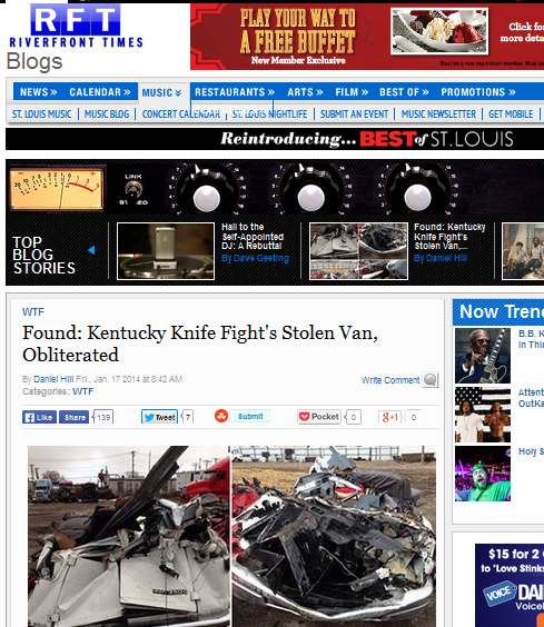 Well, this is terrible. Kentucky Knife Fight’s tour van was stolen earlier this week, and was found at a scrapyard after having been sold for parts and demolished. They have successfully secured a loaner tour vehicle and kicked off the tour as scheduled last night in Cincinnati. Riverfront Times has the details – check back there or on the band’s facebook page for updates and fundraiser info.