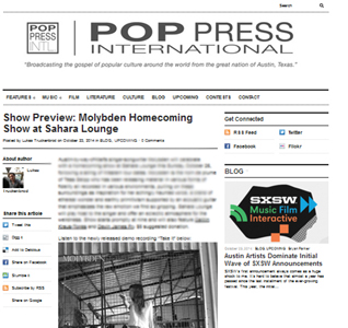 Great big chunks of space separate the layers of Molybden’s music, evoking longing and seeking. Is the voice we’re hearing a flesh and blood transmission, or an echo of something that faded from reality light years before? – Denton Record-Chronicle