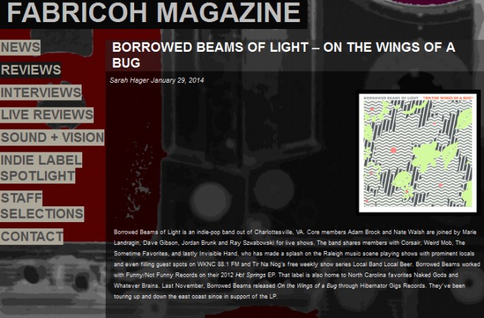 Rex Manning Day music blog included Borrowed Beams of Light’s “Drawing Blanks” in their Top Indie Pop Tracks of 2014!
