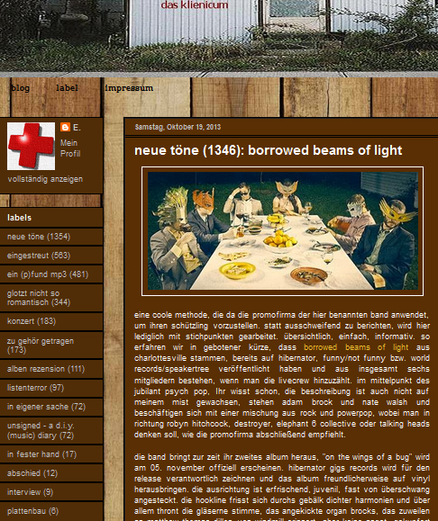 Das Klienicum features Borrowed Beams of Light’s single “On The Wings Of A Bug”. Google roughly translates a sample:
