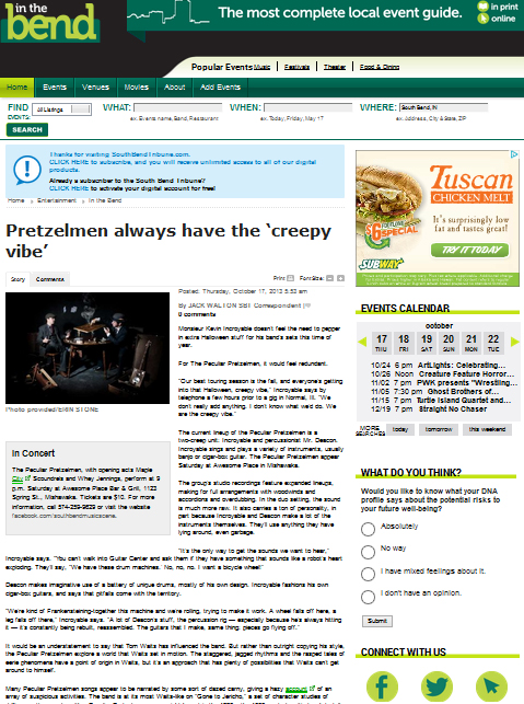 The South Bend Tribune interviewed The Peculiar Pretzelmen in advance of their show in Mishewaka at Wander Inn.