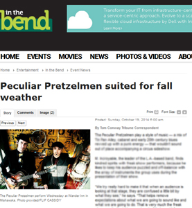 The Peculiar Pretzelmen create a madman’s brew of rock, avant-americana, pre-war blues, and hammer & brimstone – a wicked concoction of both poison and antidote. Fronted by the fearless and occasionally lucid M. Incroyable, the Los Angeles band has been kicking, stomping, screaming, and destroying stages, equipment, and minds since 2006, performing with Voltaire, Jason Webley, Jason and the Punknecks, Calamity Cubes, Lucky Tubbs, Tragedy, Tornado Rider, Baby Gramps, Hellblinki, 2 Skinnee J’s, and Vermillion Lies (Zoe Vermillion also appears on their most recent full-length Innumerable Seeds of Calamity), among many others. They’ve performed at Dragon*con. They’ve toured in a grease bus fueling up on scavenged vegetable oil. They’ve existed as a sprawling gang of 10 and as a focused-yet-cacophonous duo with M. Incroyable on vocals, guitar, banjo, mandocello, and ukulele and the Deacon overseeing percussion that is less drum kit and more spoils of an old man’s work bench. Two full-length albums, five EPs, hundreds of shows, and tens of thousands of miles have cultivated a band unlike any other – the ethics and musicality of pre-World War II blues and jazz men ignited by the “post-everything” DIY mentality of artists too broke to buy into preconceived notions and too angry to be convinced this mayhem could possibly fail.